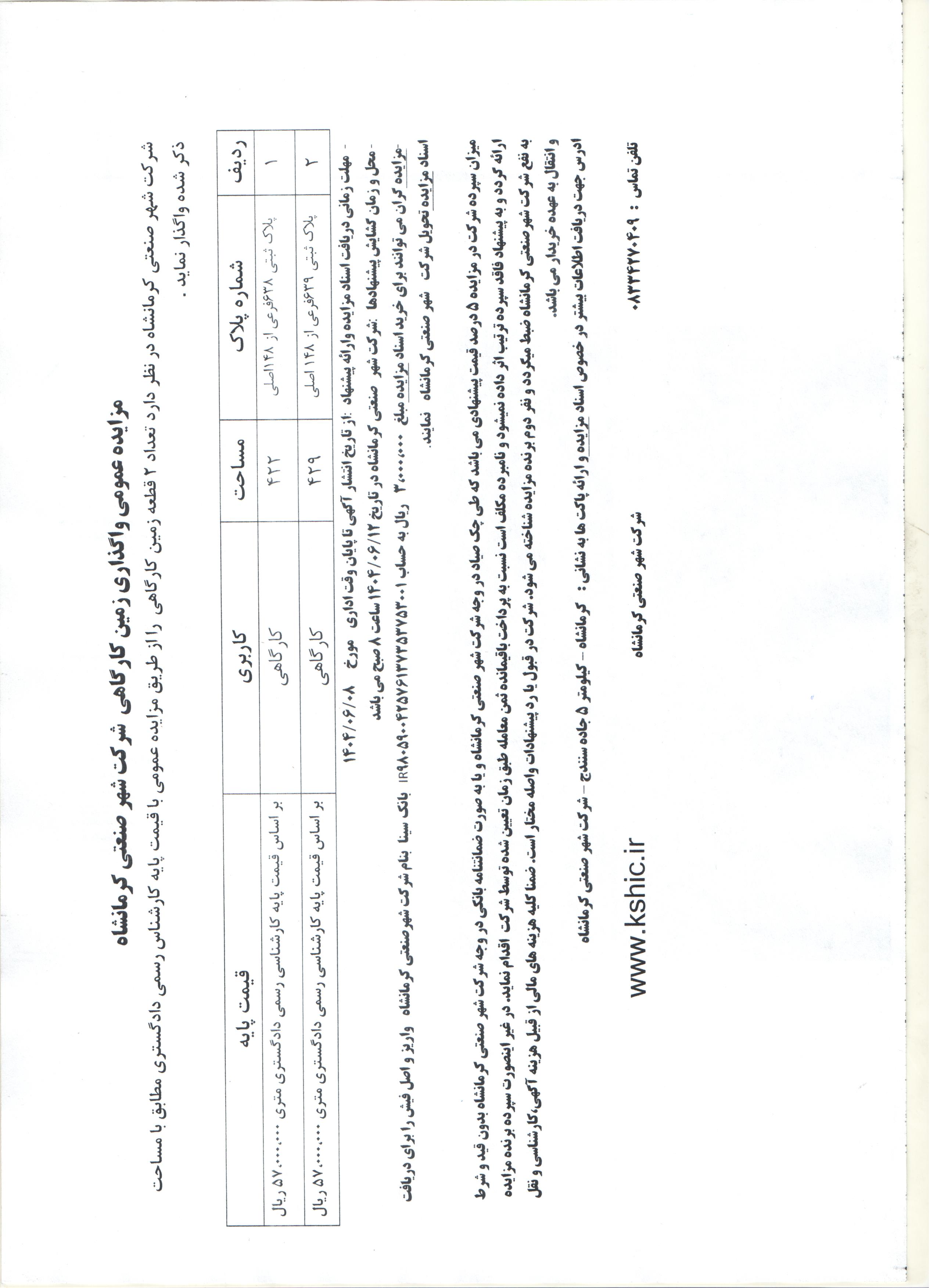 آگهی مزایده 2 قطعه زمین کارگاهی
